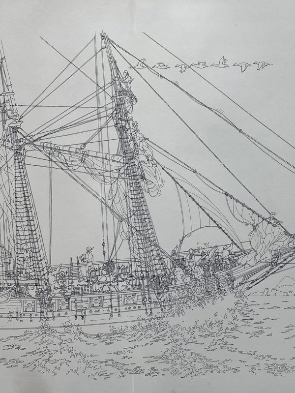 Atlante vivo del mare - Goletta francese anni '70 china su carta / ink on paper cm 53,5 x 33,5