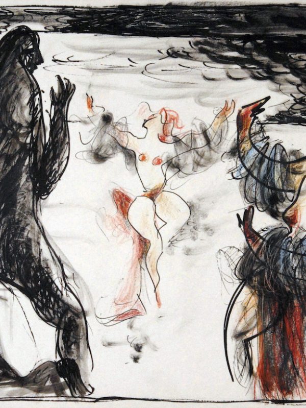 Balletto 1943-1944 china, china acquarellata e pastelli su carta / India ink, watercolour ink and pastels on paper cm 56,5 x 38