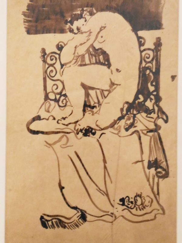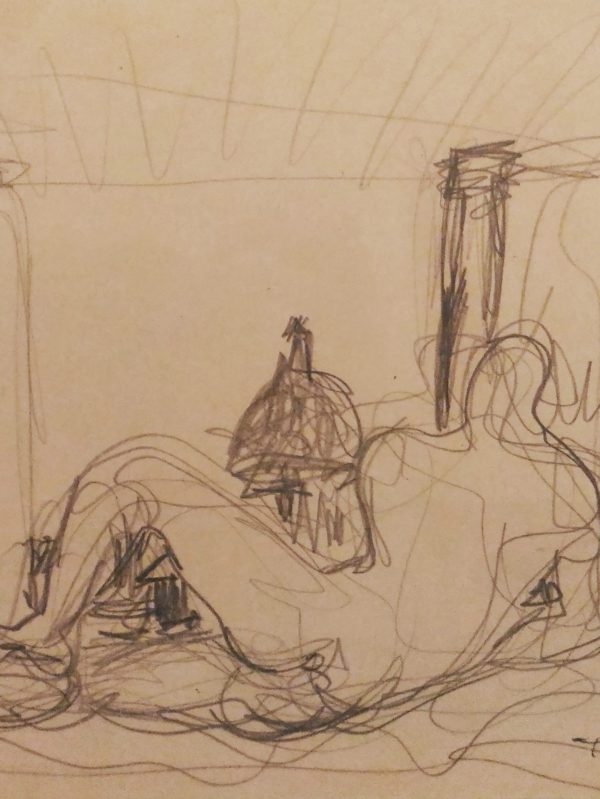Matite e pastelli su carta intelata.
